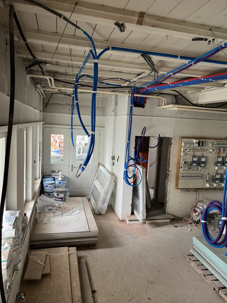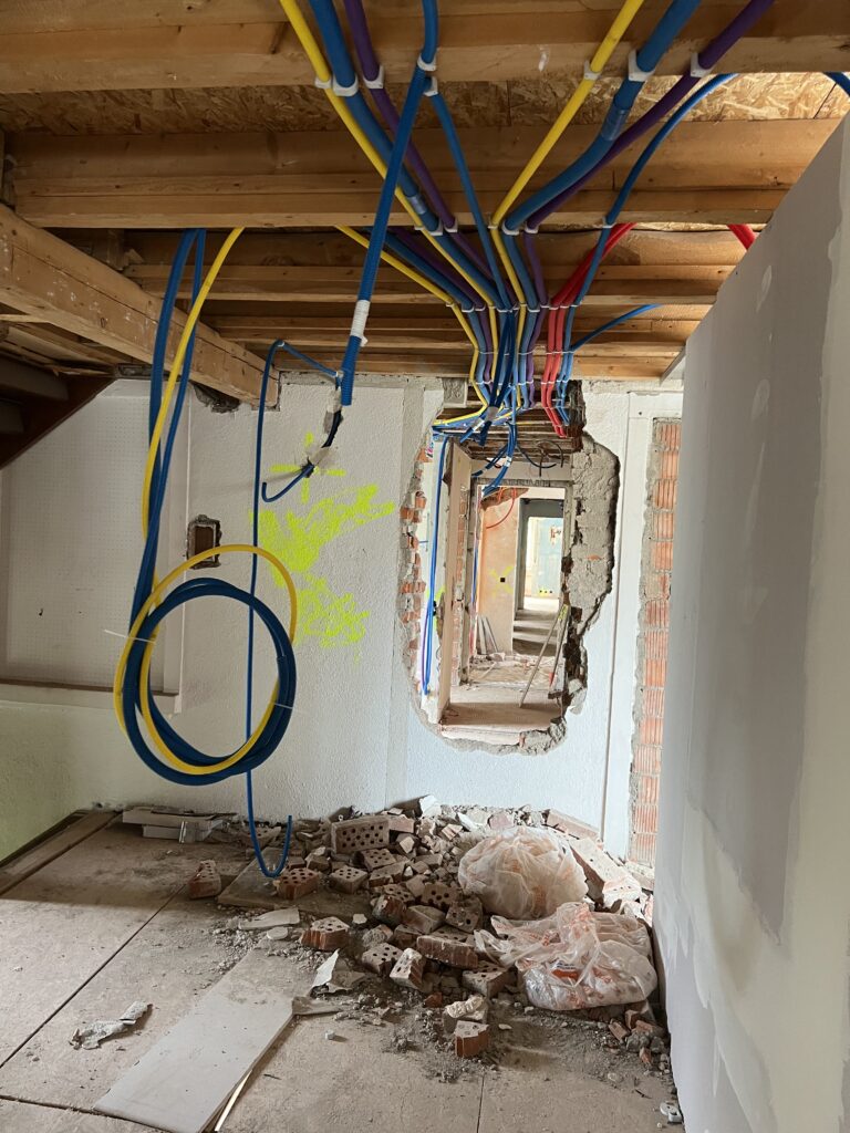 Dank der engen Zusammenarbeit mit Architekten konnte unser Team von SE-Elektro ein detailliertes Konzept für die elektrische Sanierung realisieren. Hierbei legten wir besonderen Wert auf die Installation energieeffizienter Systeme, die nicht nur die Betriebskosten senken, sondern auch den Komfort für die Bewohner erheblich steigern.